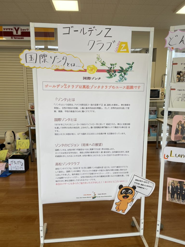 高松大学ゴールデンZクラブについての紹介や、メンバーによるチャリティバザーもありました。